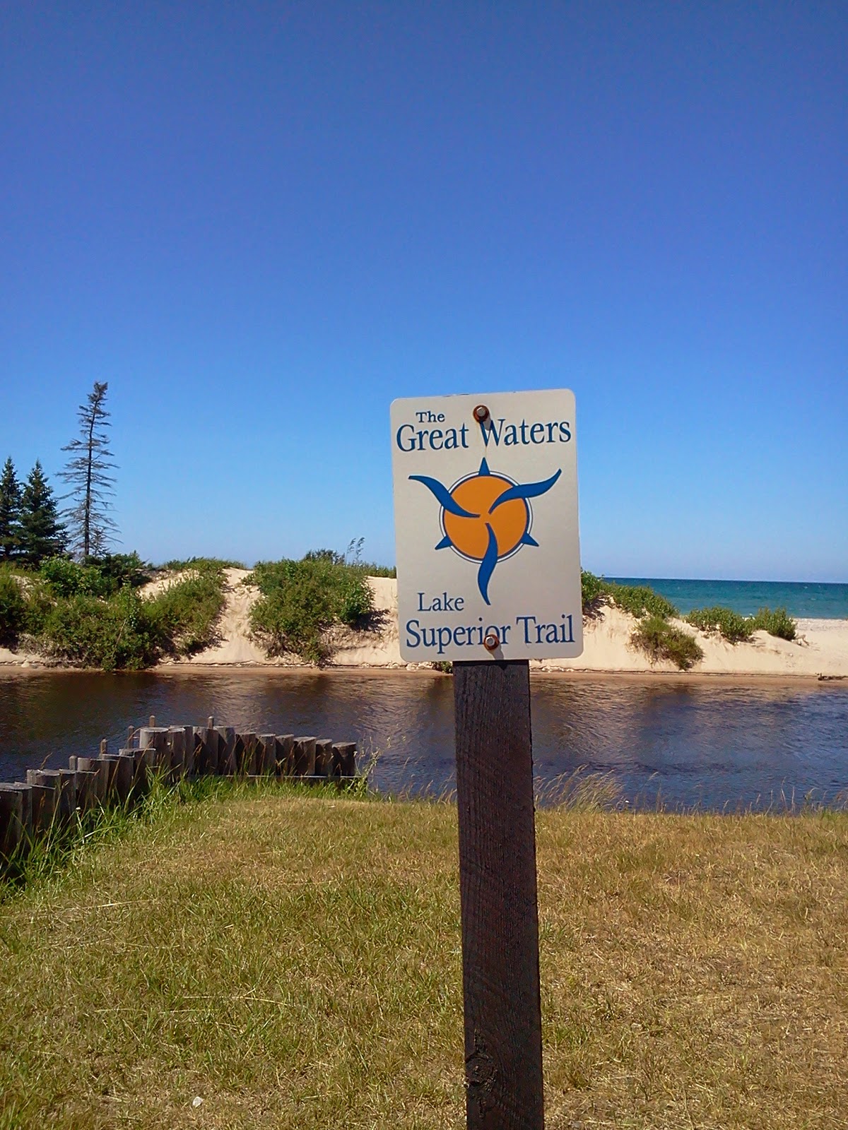 | The bridge over Two Hearted River leads to the shore of Lake Superior. It’s a beautiful spot with amazing agate collecting opportunities (if you know what to look for…I do not). |