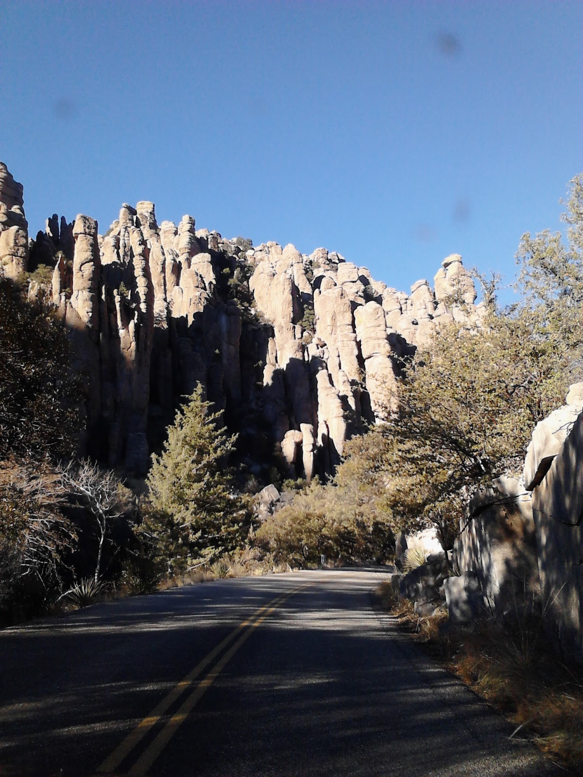 Another day we decided to drive out to Chiricahua National Monument even though neither of us had ever heard of it. Well, let me tell you…it is worth the drive, even if you are doing so with the gas gauge on E and the red ‘low fuel’ light burning a hole in your retinas as you all of a sudden find religion and pray to God that you don’t get stranded in this desolate wilderness. But I digress.