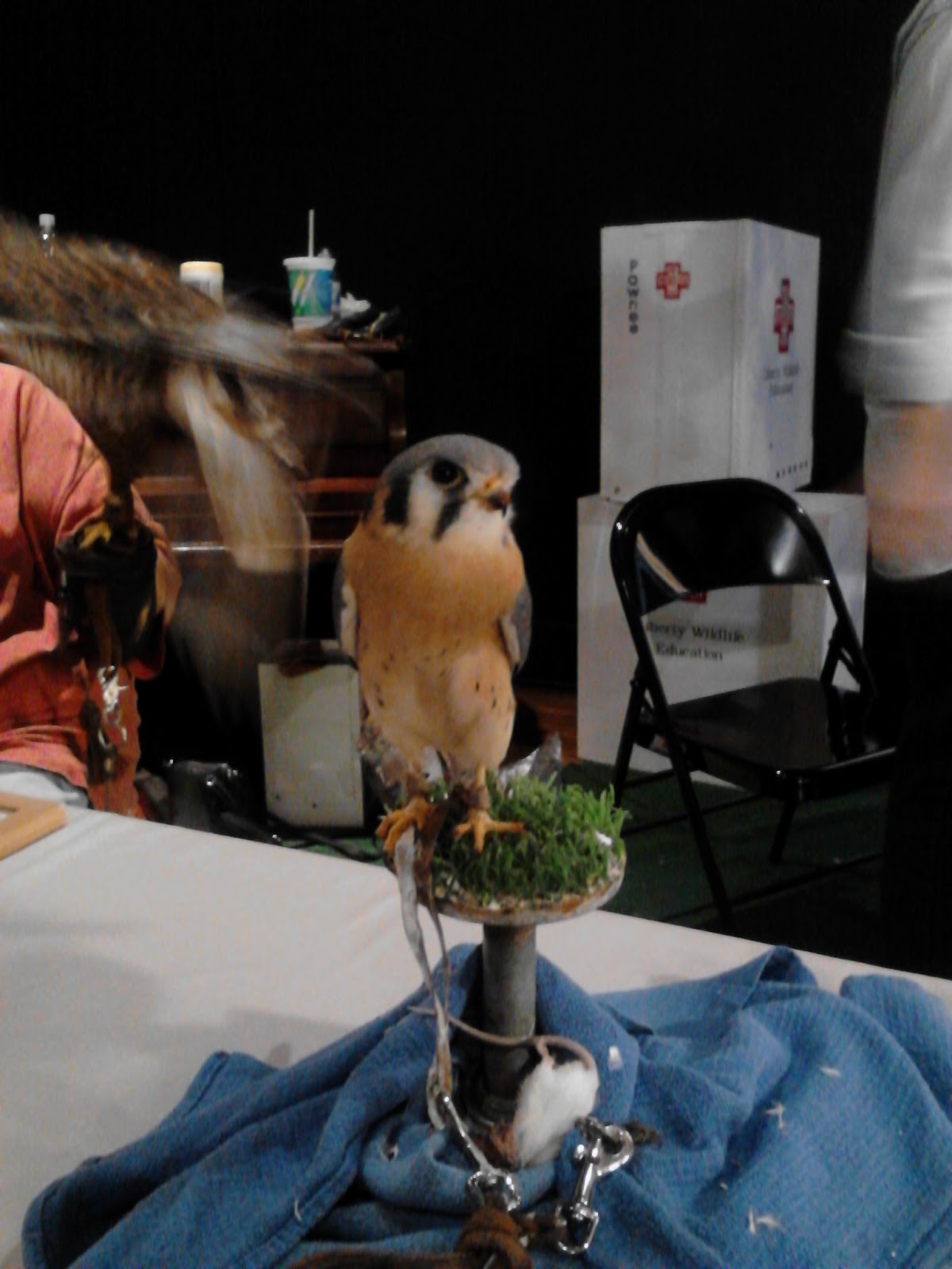 We did have a nice surprise though when we stopped by the auditorium which housed the information booth and crafts for the bird festival. A rescue organization had several birds of prey on display including an adorable Kestrel (he was such a ham), several types of owls, a Red Tailed Hawk and a young Bald Eagle. It was pretty amazing to be standing no more than 3 feet from these beauties. It completely made up for the bird-less driving tour.