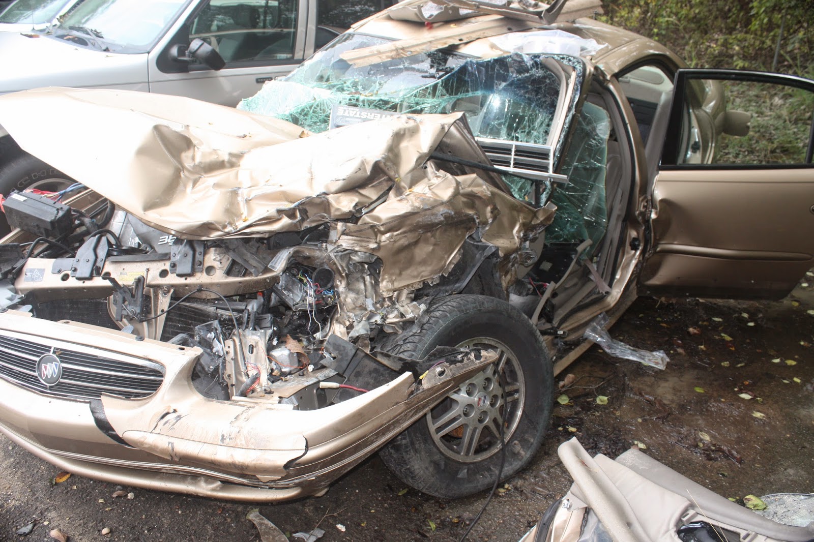My parent’s car after a careless driver hit them head-on while attempting to pass on a double solid line.