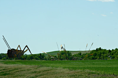 A 40 foot tall grasshopper sculpture found along the Enchanted Highway in North Dakota.