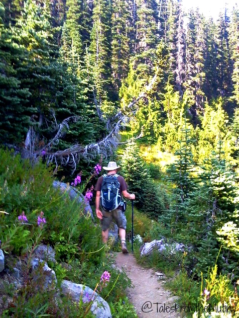 We got the wild idea to make this hike a loop rather than an out and back. After all, that descent was 1370 feet, which meant our climb back out would be very steep. We looked at the map and decided to return via the Badger Valley Trail, a lesser used trail that’s a bit longer but not as steep. The problem was our map wasn’t as detailed as it should be…so we didn’t know exactly how much longer (it turns out it’s about 1.2 miles longer making the hike 8.4 miles instead of 7.2 miles total). We did consult a couple of backpackers who were camped at the lake and who assured us the trail did, indeed, lead to the parking lot and wasn’t “much longer” than the trail we had taken down.