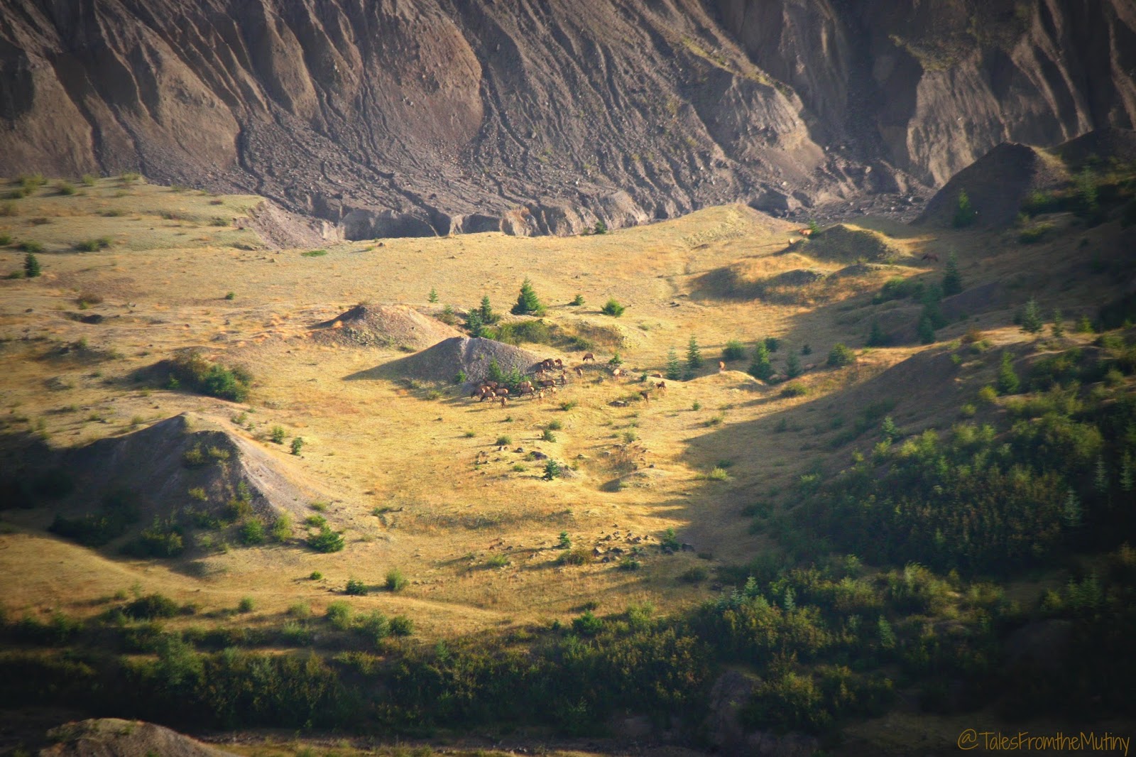 | A large herd of elk off in the distance. |