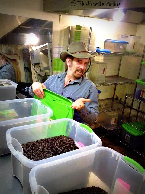 | Seth showing off his delicious Sumatra at his store front on Main Street. |
