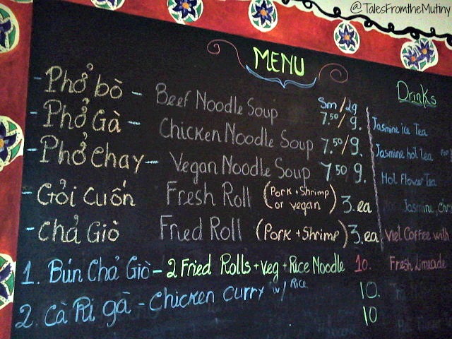 | The menu board at Thuy’s. The Iced Jasmine Tea is worth a stop itself. |