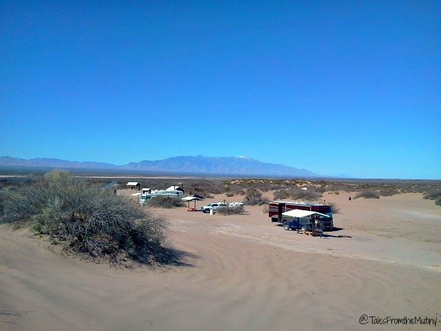 We had scoped out Hot Well Dunes while we were camping at Indian Bread Rocks and I’m glad we did. Between some not-so-clear directions I found online and my cell phone GPS we managed to do some serious 4 wheel driving (in the Jeep thank God) to find the campground. But, by getting a little lost we were also able to find the correct way to get the Mutiny there safely…even though the roads were still washboard and sandy.