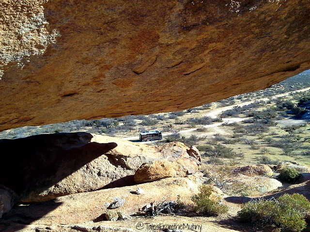 Indian Bread Rocks is administered by the BLM and is part of the Dos Cabezas Mountain Wilderness. There are several undeveloped campsite but larger rigs will probably want to stay closer to the picnic area, which seems to be the only somewhat level area. You can stay up to 14 days and, during our visit, the rangers did come and check on us…partially due to the fact that this is technically part of the drug smuggling corridor (even though the ranger informed us there hadn’t been any illegal activities here in all the years he’s been patrolling the area you still have to stay informed).