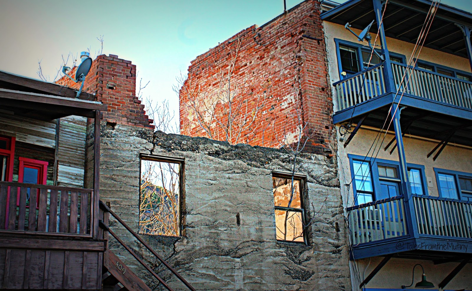 | Crumbling buildings and satellite dishes… |