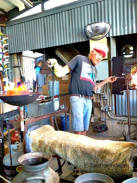 La Victoria Glass Blowing Studio ~ Behind Raku is a funky old dilapidated building with something really, really cool inside. A kiln, glory hole, torches and powdered glass occupy at least half the shop while several shelves display the magnificent blown glass art of Tracy Weisel. Several chairs are set up so you can sit a while and watch the whole process, from beginning to end, as he explains each step. The day we went he was making glass pears and they were stunning. A worthy stop anytime you’re in Jerome.