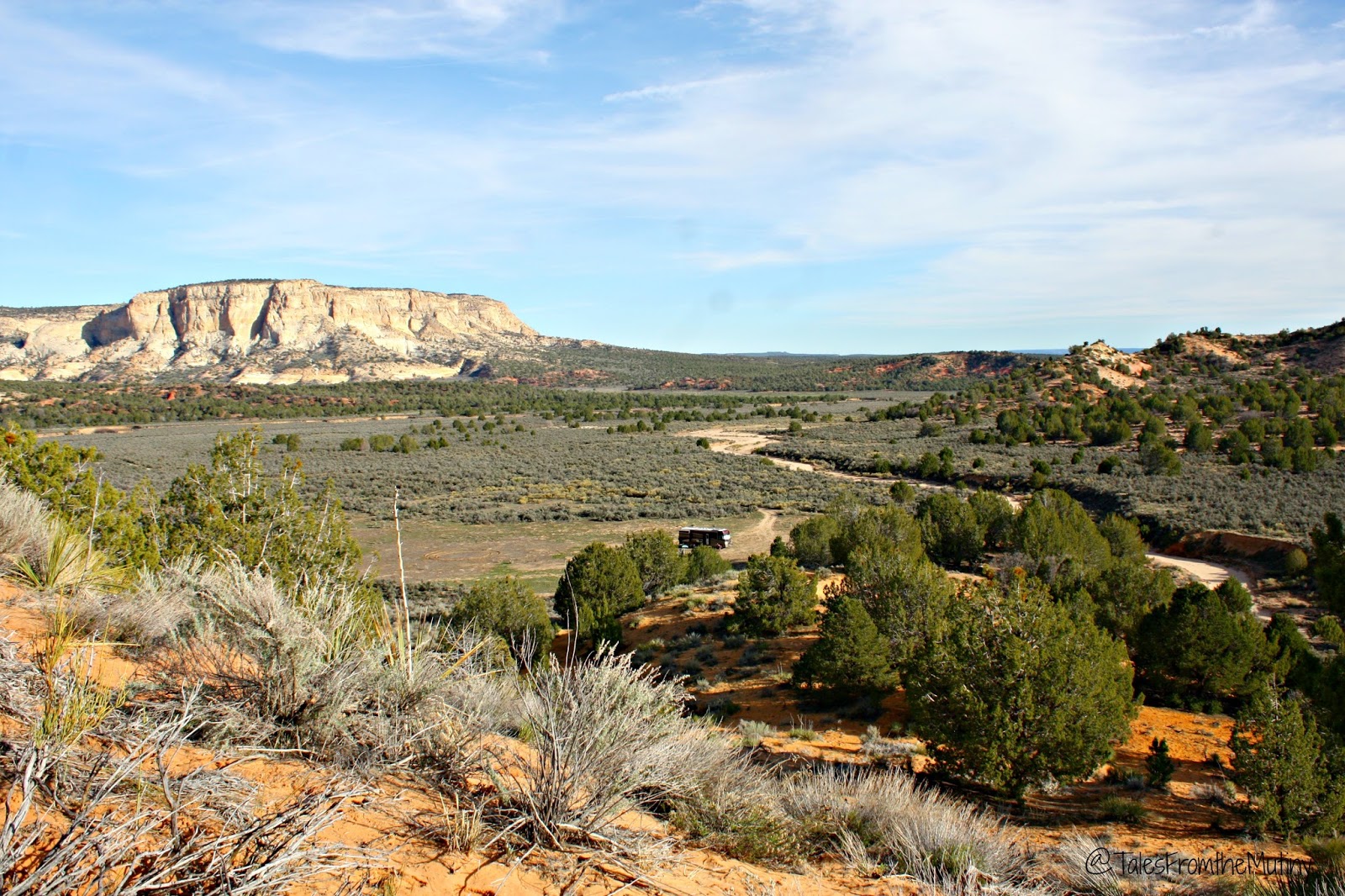 We were traveling West on Highway 89 from Page, Arizona to Kanab, Utah, passing through the Paria area of Grand Staircase~Escalante National Monument. Grand Staircase is the first monument to be managed by the Bureau of Land Management rather than the National Parks Service and at 1.9 million acres, it’s a monumental task. It’s more remote, and far less visited, than it’s bordering NPS neighbors, Zion, Arches and Bryce, yet is made up of the same “staircase” that makes these other parks remarkable. And, it’s a fulltimers dream come true during the high-season.