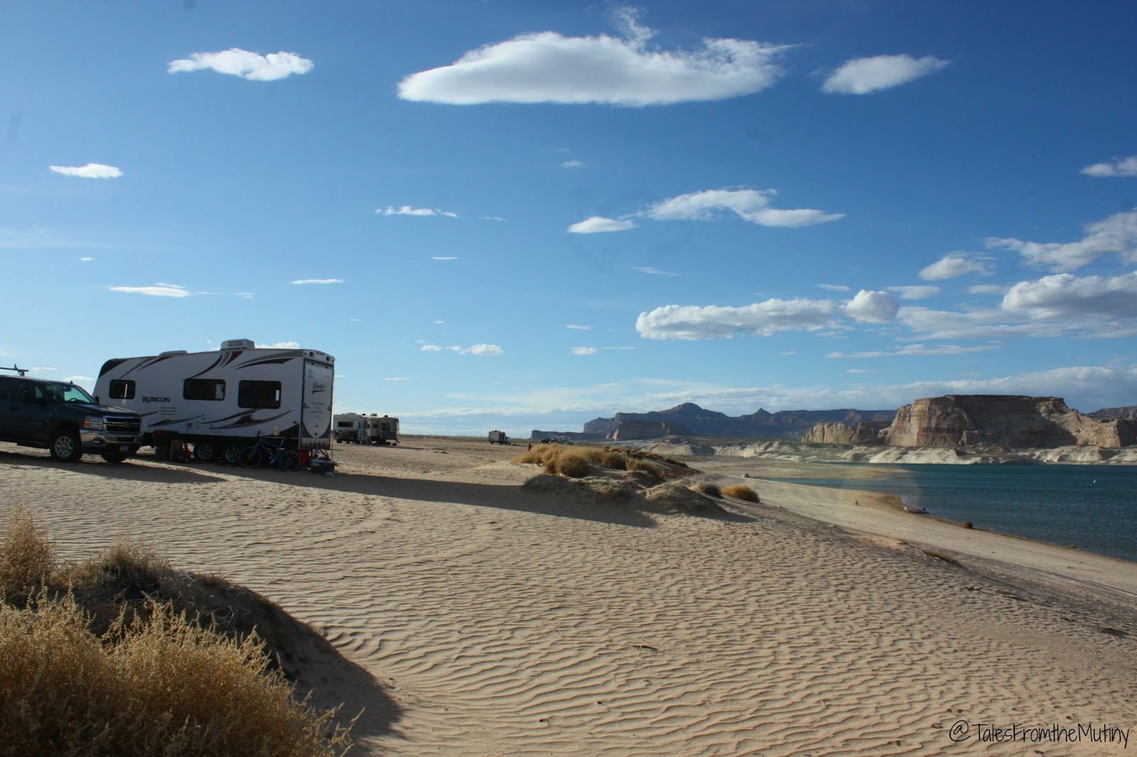 Although Lone Rock Beach, a National Parks Service run area, is probably the prime spot for those able to boondock, we were unable to find an open spot suitable for our Class A. The deep sand would have made for a bad day if we had tried to take the Mutiny there, but lighter-weight vehicles may not have an issue. The views were stunning and really, who wouldn’t want to camp on the beach? We managed to snag a spot at Lake Powell Campground and RV for one night only, which also determined what we could and could not see during our stay.