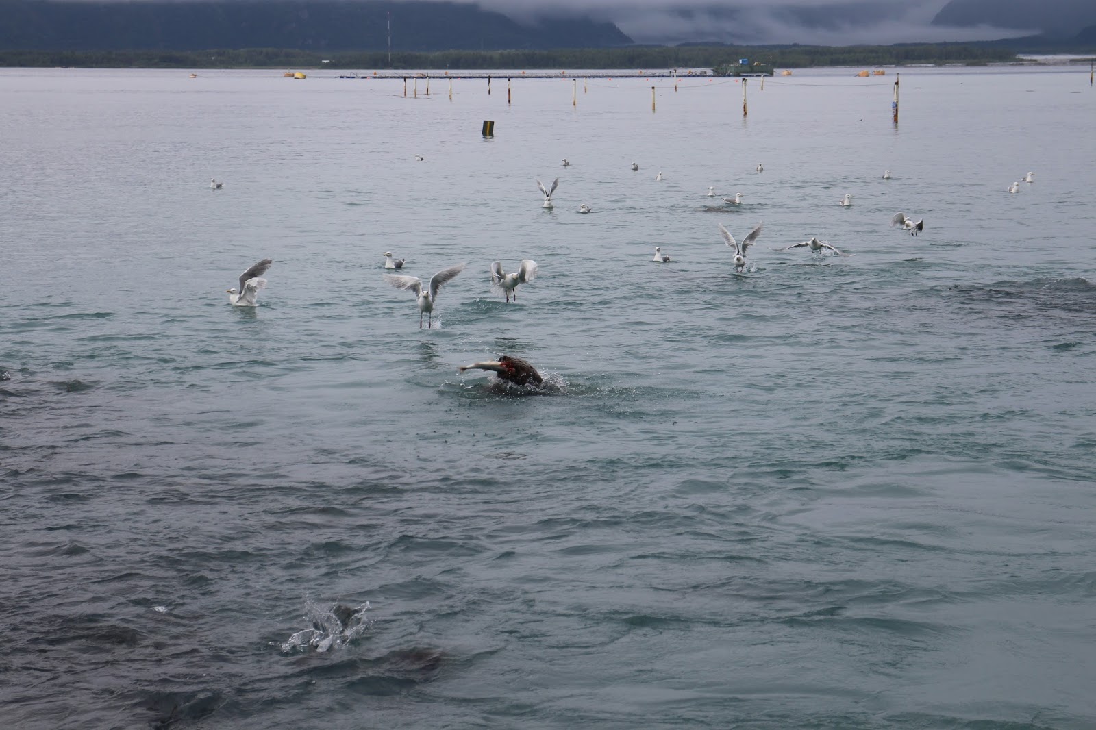 We also spent the day at the Solomon Gulch Fish Hatchery on Dayville Rd. There is RV camping allowed out here in specified areas and might be a good choice for those who want waterfront (and slightly less crowded) parking. But, the place is popular and attracts a lot of fishermen and tourists who come to see the sea lions, bears and salmon. We spent a few hours watching the salmon and sea lions and then moved down the road to go fishing. There are specific rules on where and how you can catch salmon and it changes in different areas (and with different types of salmon). Be sure to know what you’re fishing for and have proper licenses…they do check!