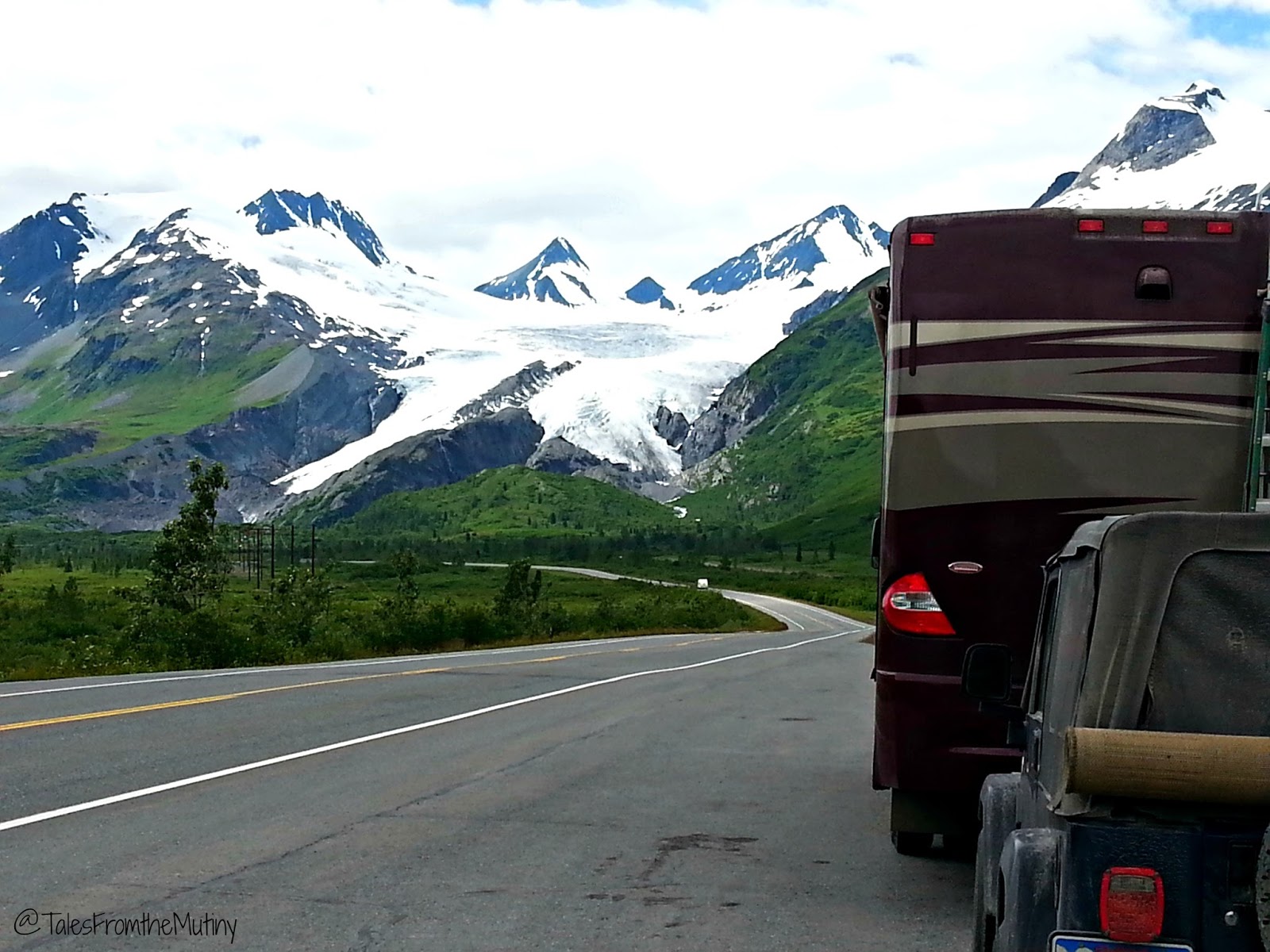 After pretty much getting skunked fishing at the Copper River we were eager to get to Valdez where we’d have a chance to do other “Alaska” stuff…like hike to a glacier, watch the salmon return to the fishery they were born at, fish for said salmon and cruise the Prince William Sound. Our little threesome of RVs traveled down the Richardson Highway and made an overnight pit stop in the Keystone Canyon so we’d have better access to explore a few areas before getting to Valdez.